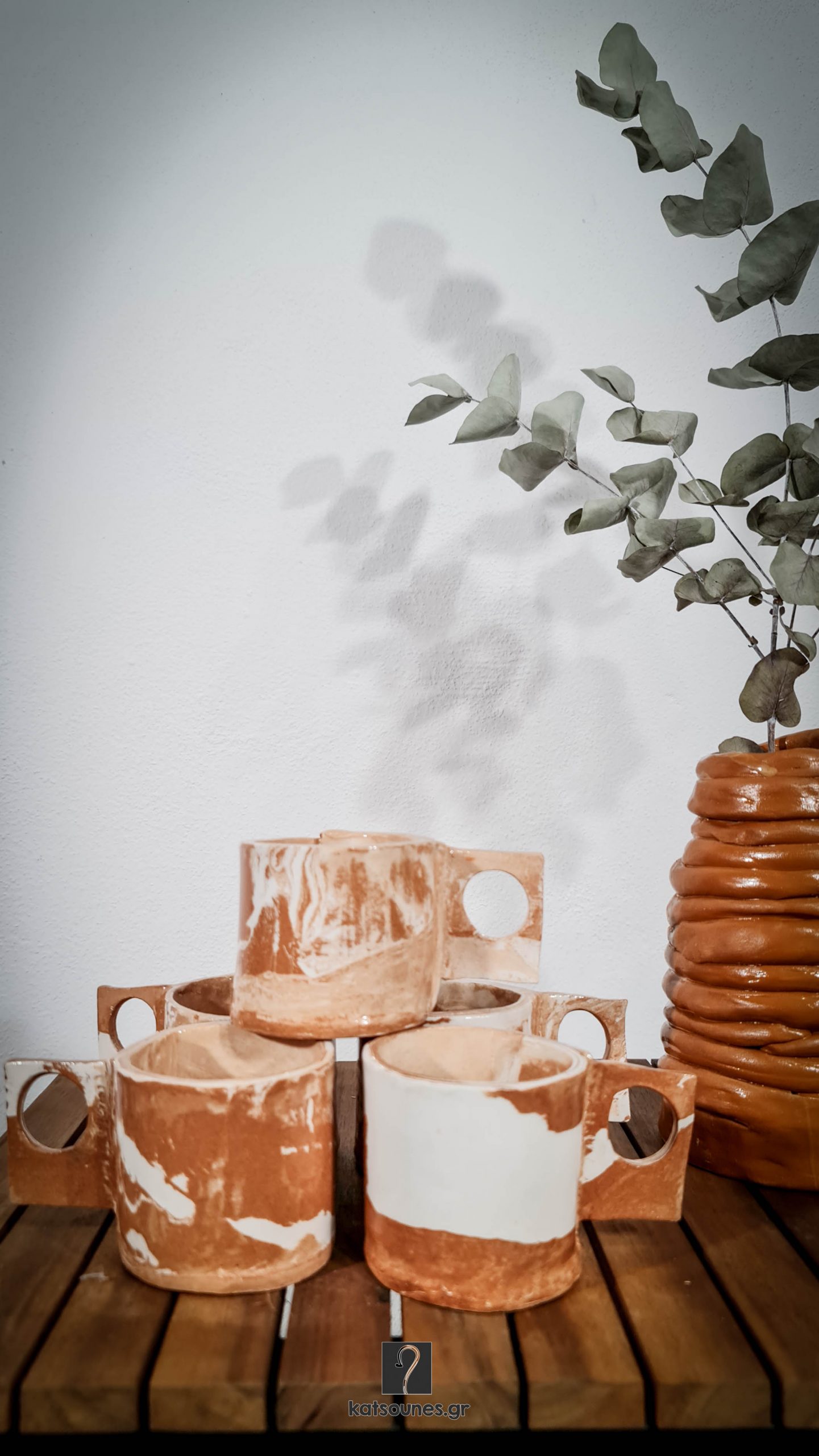 - Η μίξη λευκού και κόκκινου πηλού δημιουργεί ενδιαφέρουσες διαβαθμίσεις χρωμάτων και μοτίβα, καθιστώντας κάθε κούπα μοναδική. Αυτό προσθέτει έναν καλλιτεχνικό και απρόβλεπτο χαρακτήρα στο τελικό προϊόν.