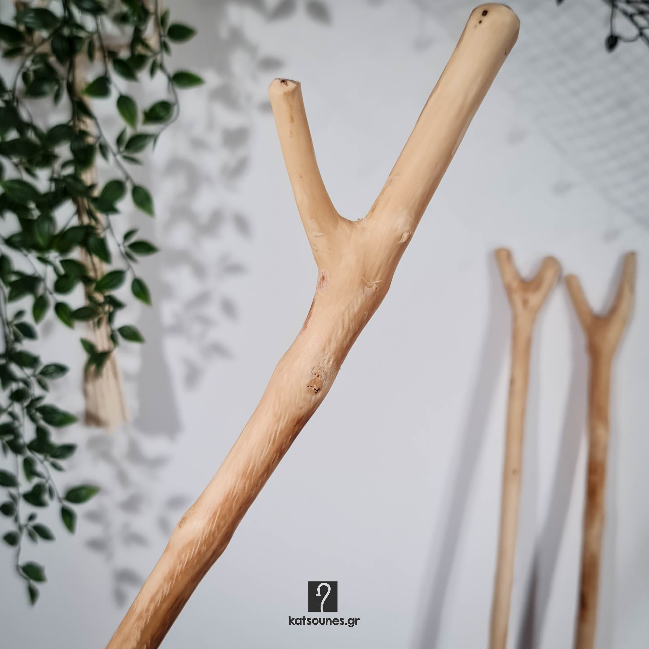 Μπαστούνι πεζοπορικό με φυσική διχάλα από αποφλοιωμένο ξύλο κρανιάς.