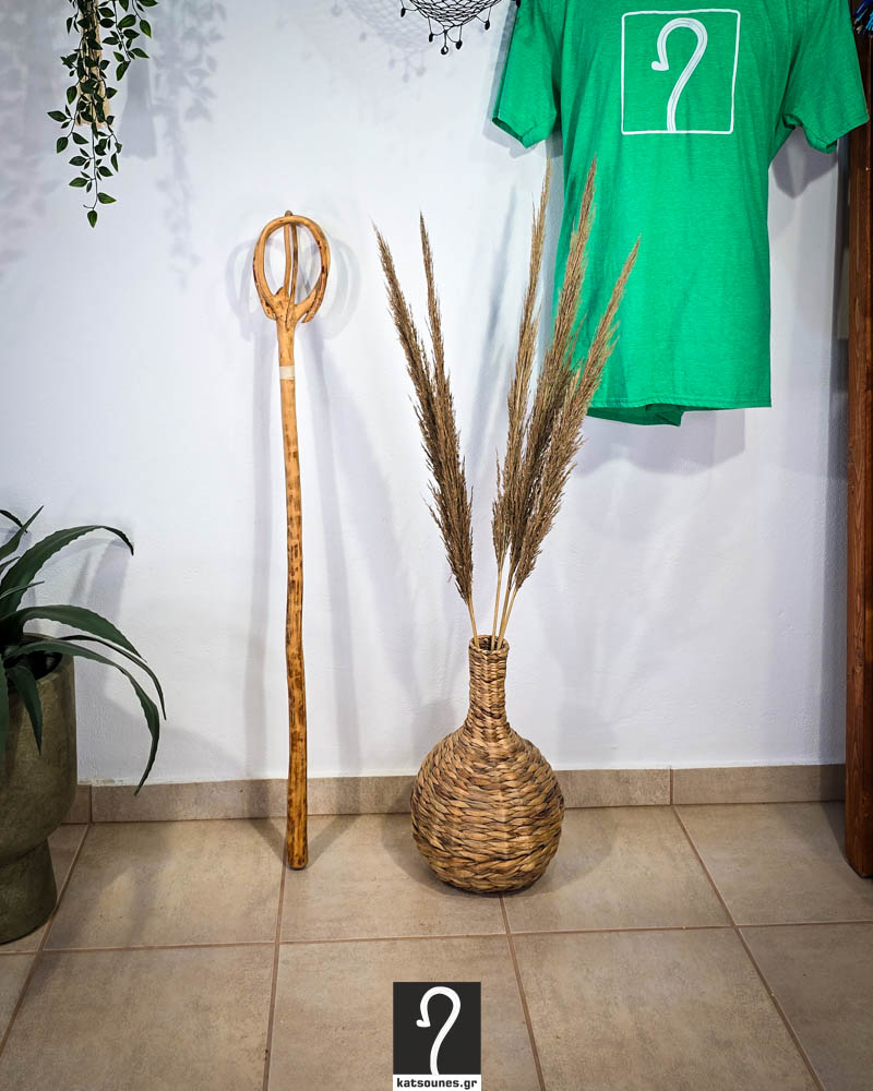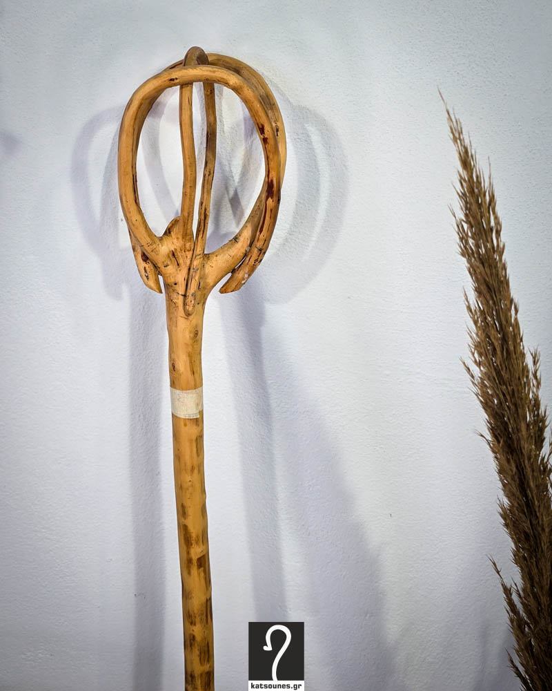 Ένα αυθεντικό κομμάτι της κρητικής παράδοσης, φτιαγμένο στο χέρι από σκίνο – το ανθεκτικό ξύλο που επιλέγεται από γενιές βοσκών στα βουνά της Κρήτης.