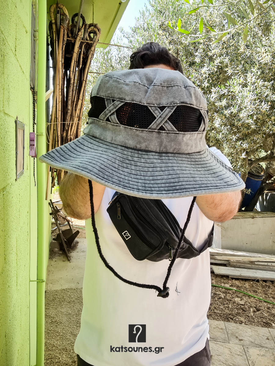 - Καπέλο υφασμάτινο κώνος ανδρικό με δίχτυ και κορδόνι.