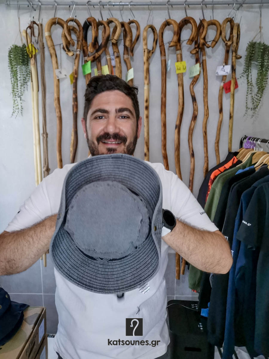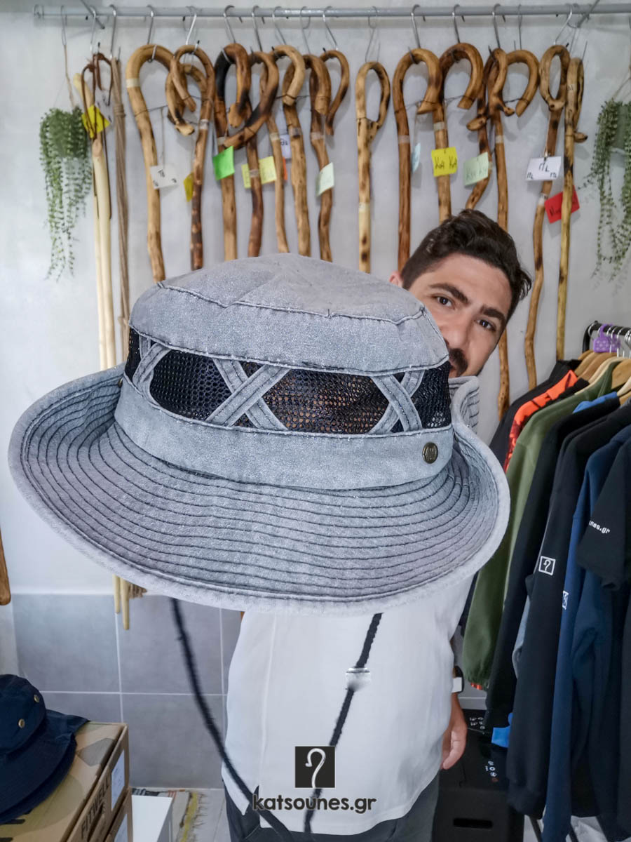 • Καπέλο υφασμάτινο κώνος ανδρικό με δίχτυ και κορδόνι.