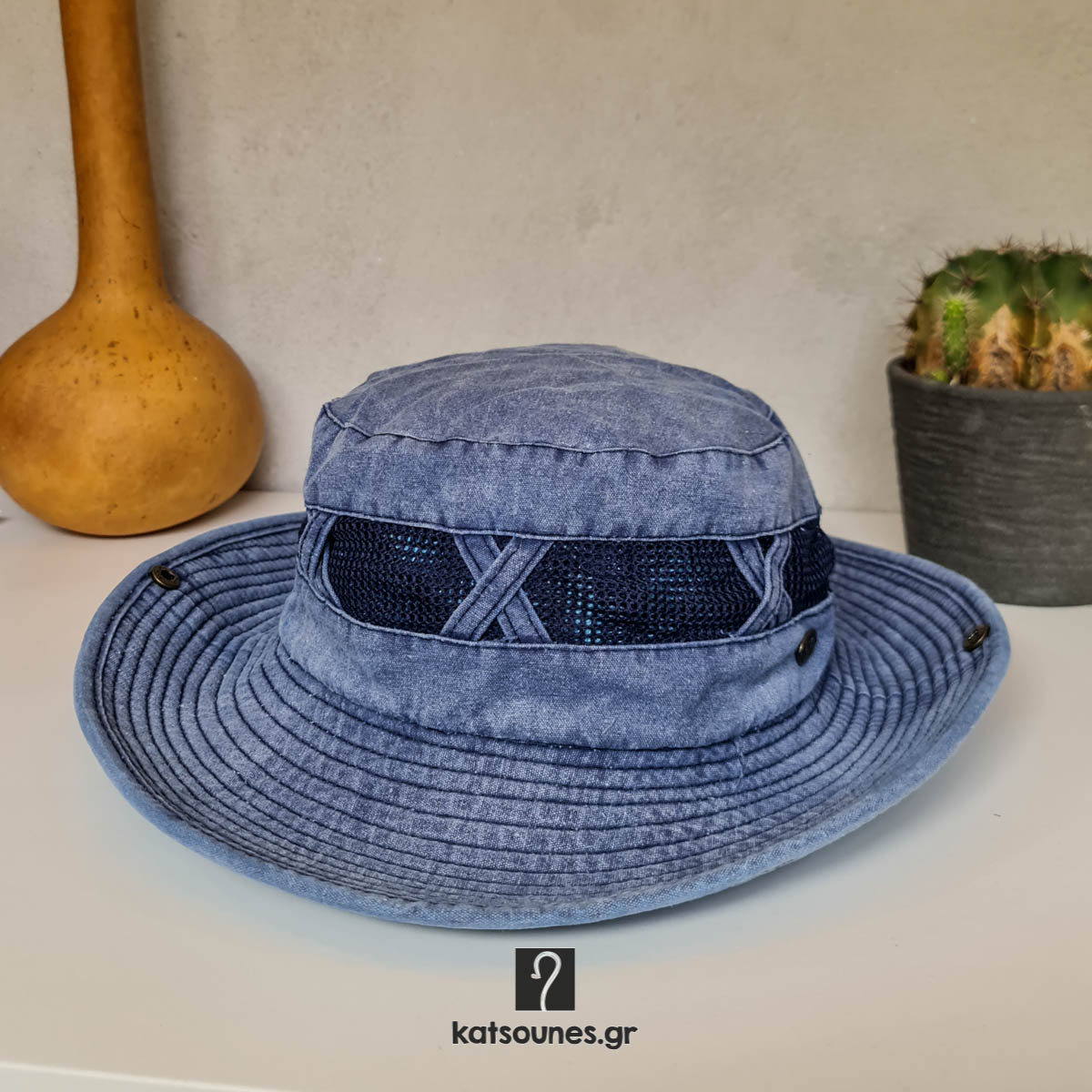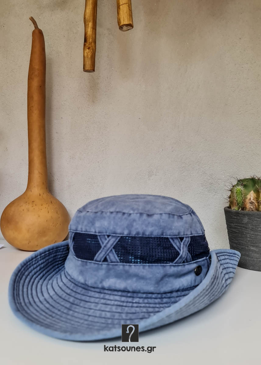 - Καπέλο υφασμάτινο κώνος ανδρικό με δίχτυ και κορδόνι.