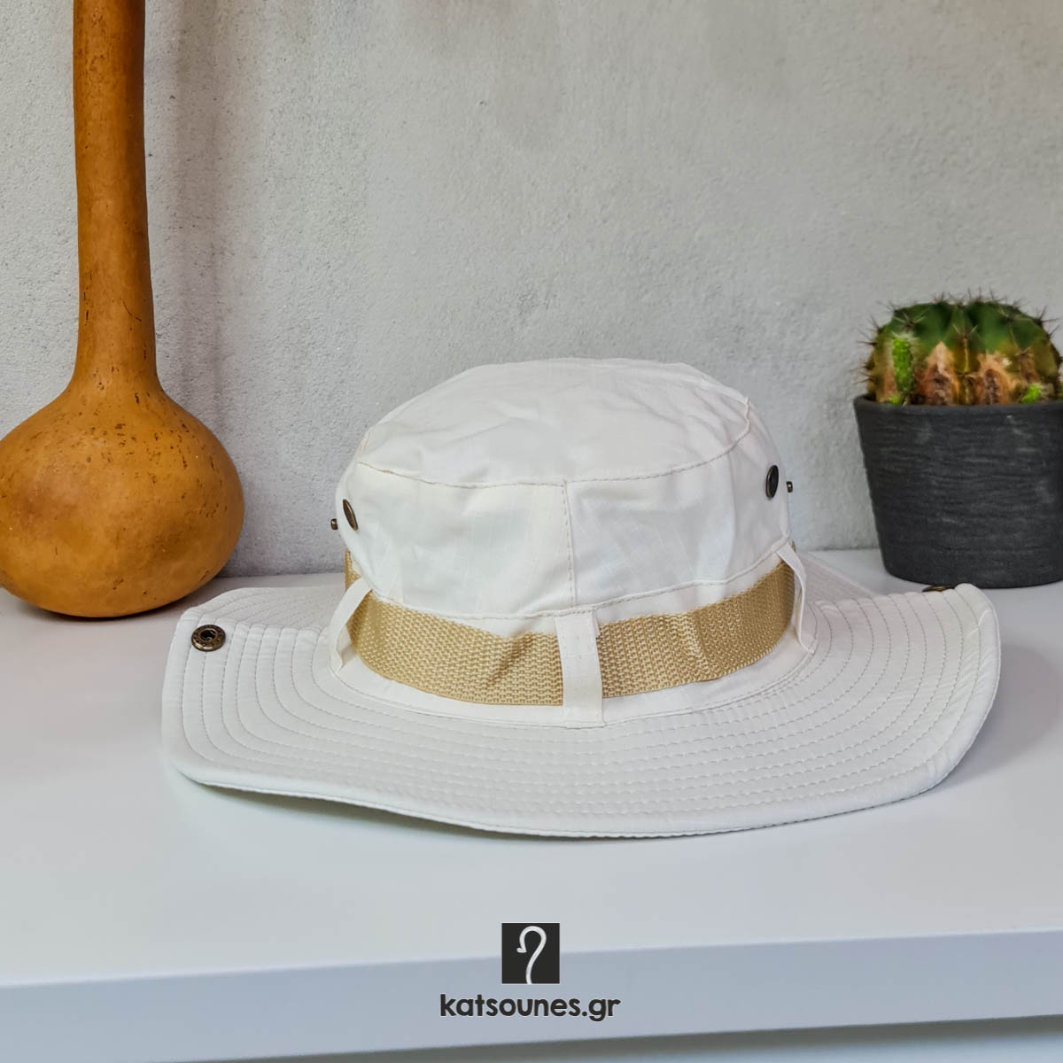 Υφασμάτινο καουμπόικο καπέλο με κορδόνι.