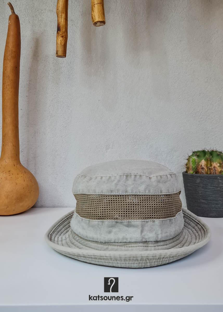 • Καπέλο υφασμάτινο κώνος ανδρικό με δίχτυ και κορδόνι.