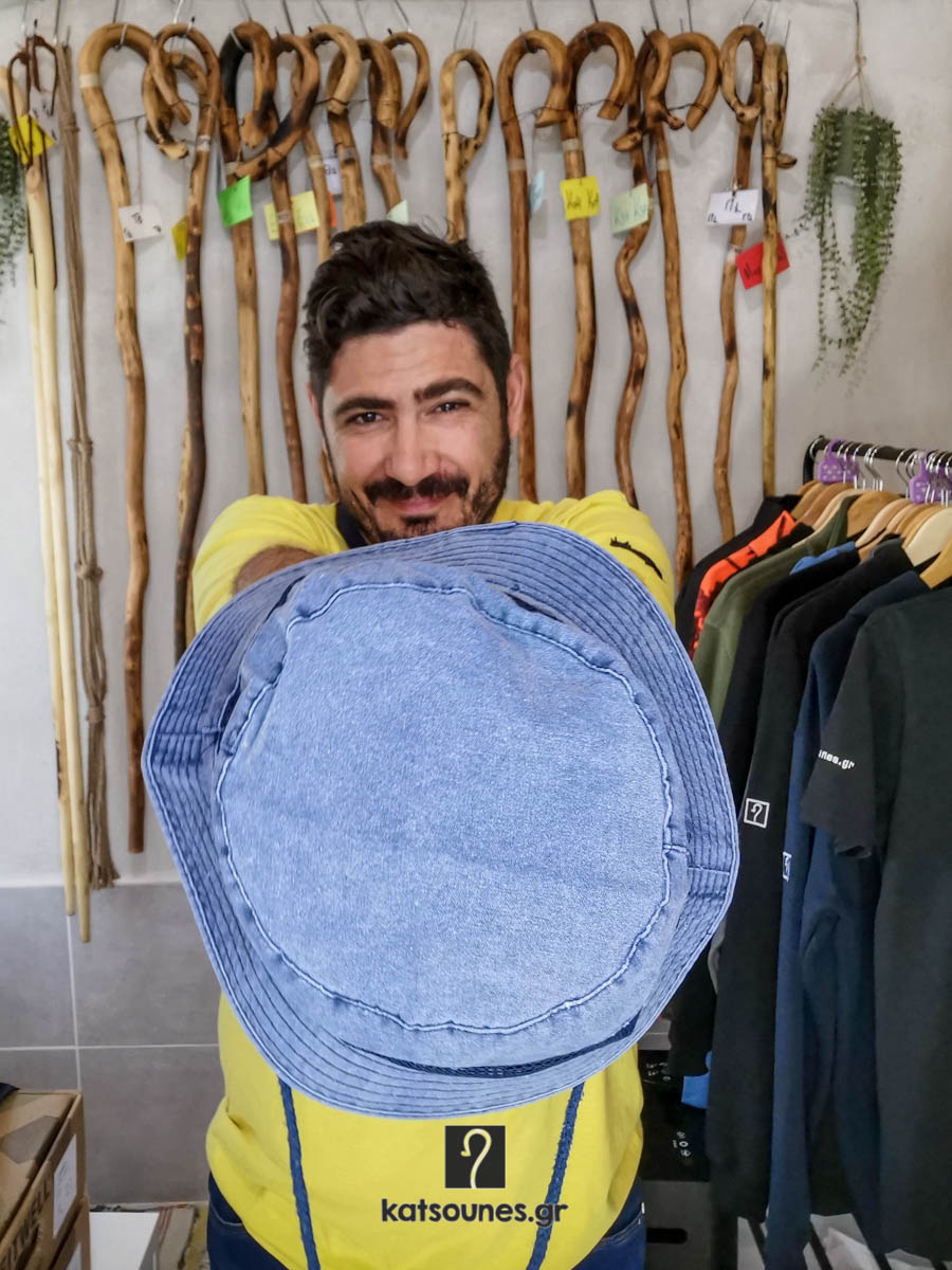 • Καπέλο υφασμάτινο κώνος ανδρικό με δίχτυ και κορδόνι.