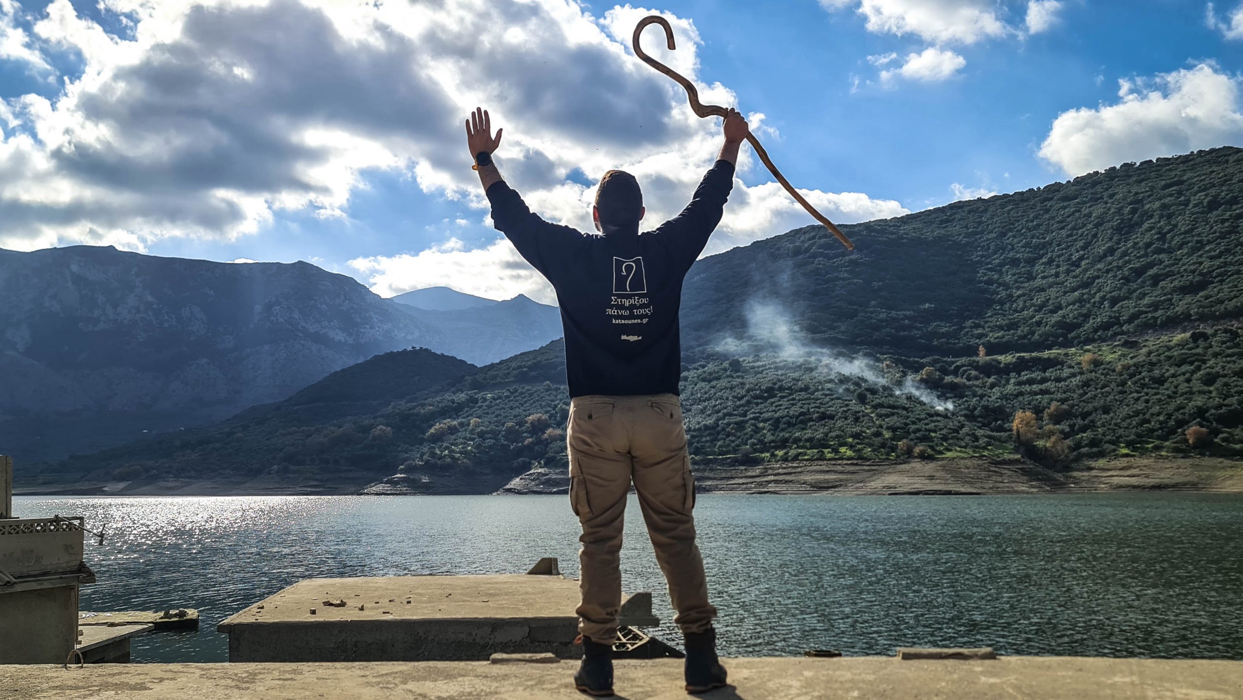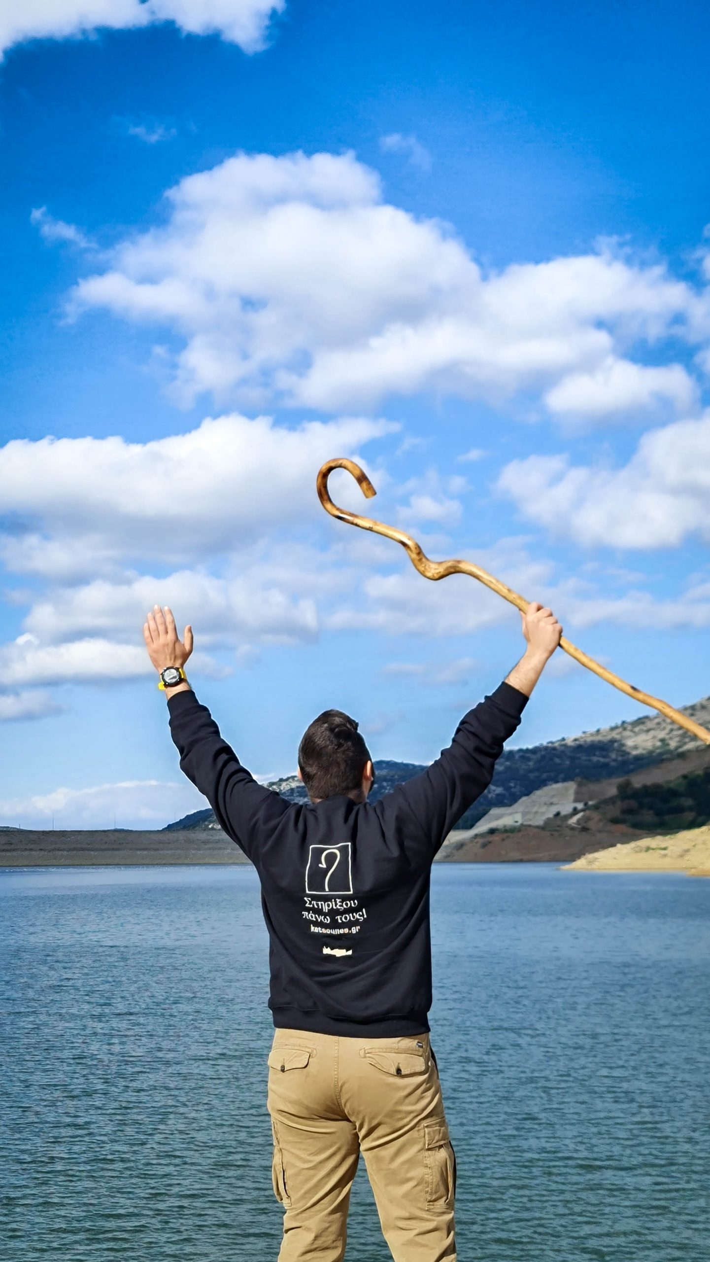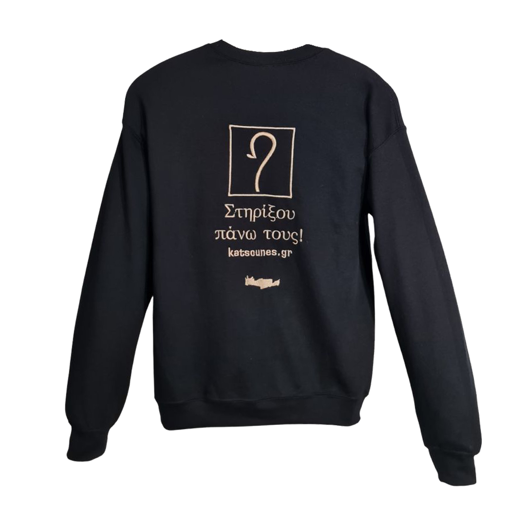 Ζεστό Φούτερ με κεντημένη πάνω στην πίσω όψη του την Κρήτη και μία Κρητική Κατσούνα. Μαύρο με λευκό κέντημα!