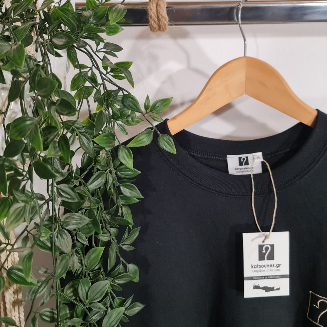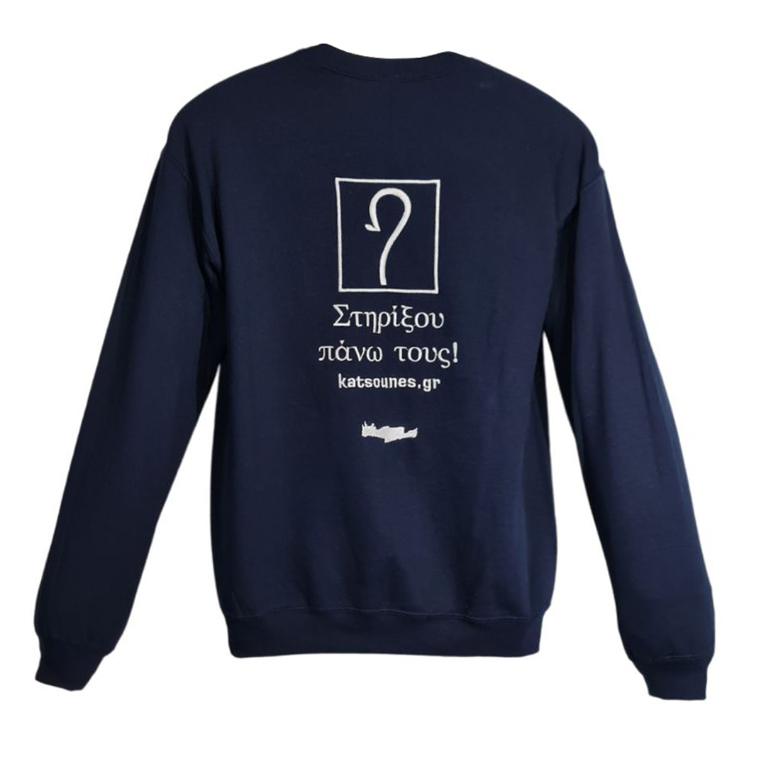 Ζεστό Φούτερ με κεντημένη πάνω στην πίσω όψη του την Κρήτη και μία Κρητική Κατσούνα. Σε σκούρο μπλε με λευκό κέντημα!