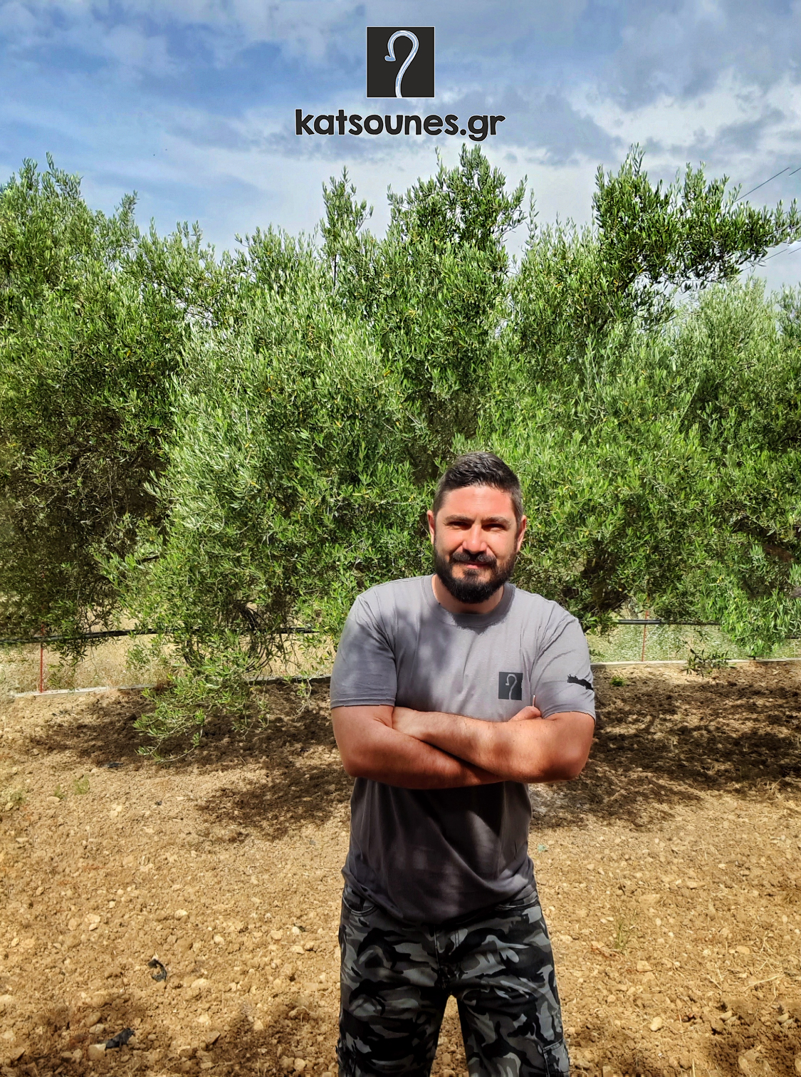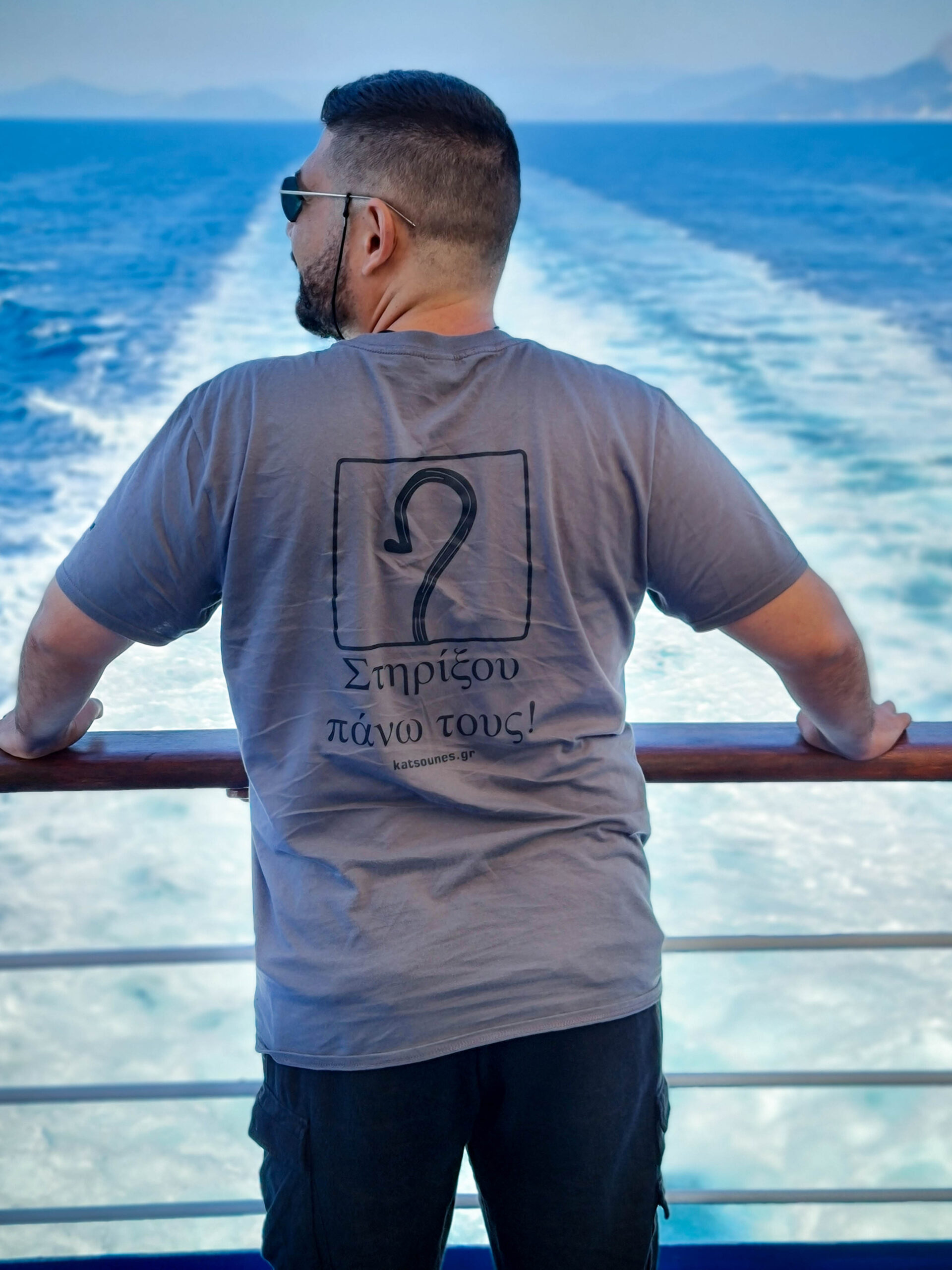T-shirt μπλουζάκι κοντομάνικο με κρητική κατσούνα και την Κρήτη | Γκρι | Σχέδιο 1