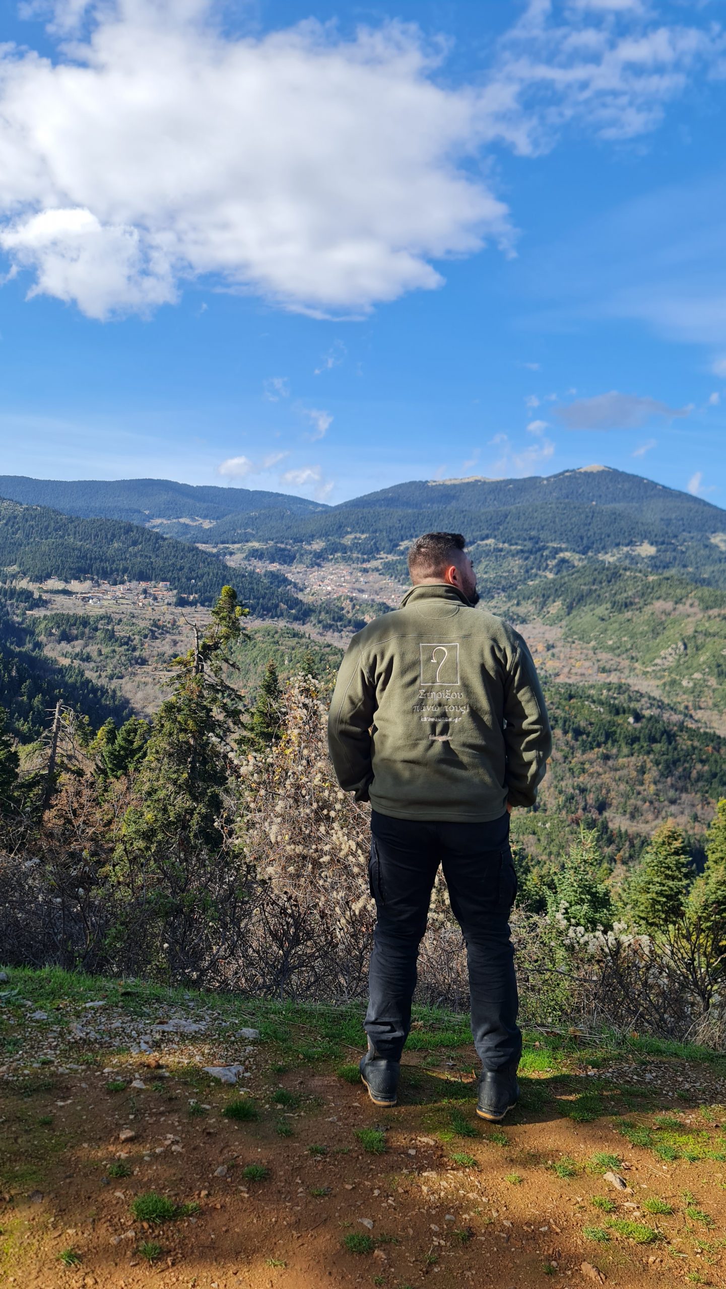 Ζακέτα Fleece χακί, με μπεζ κέντημα στην πλάτη την ΚΡΗΤΗ και μία κατσούνα!