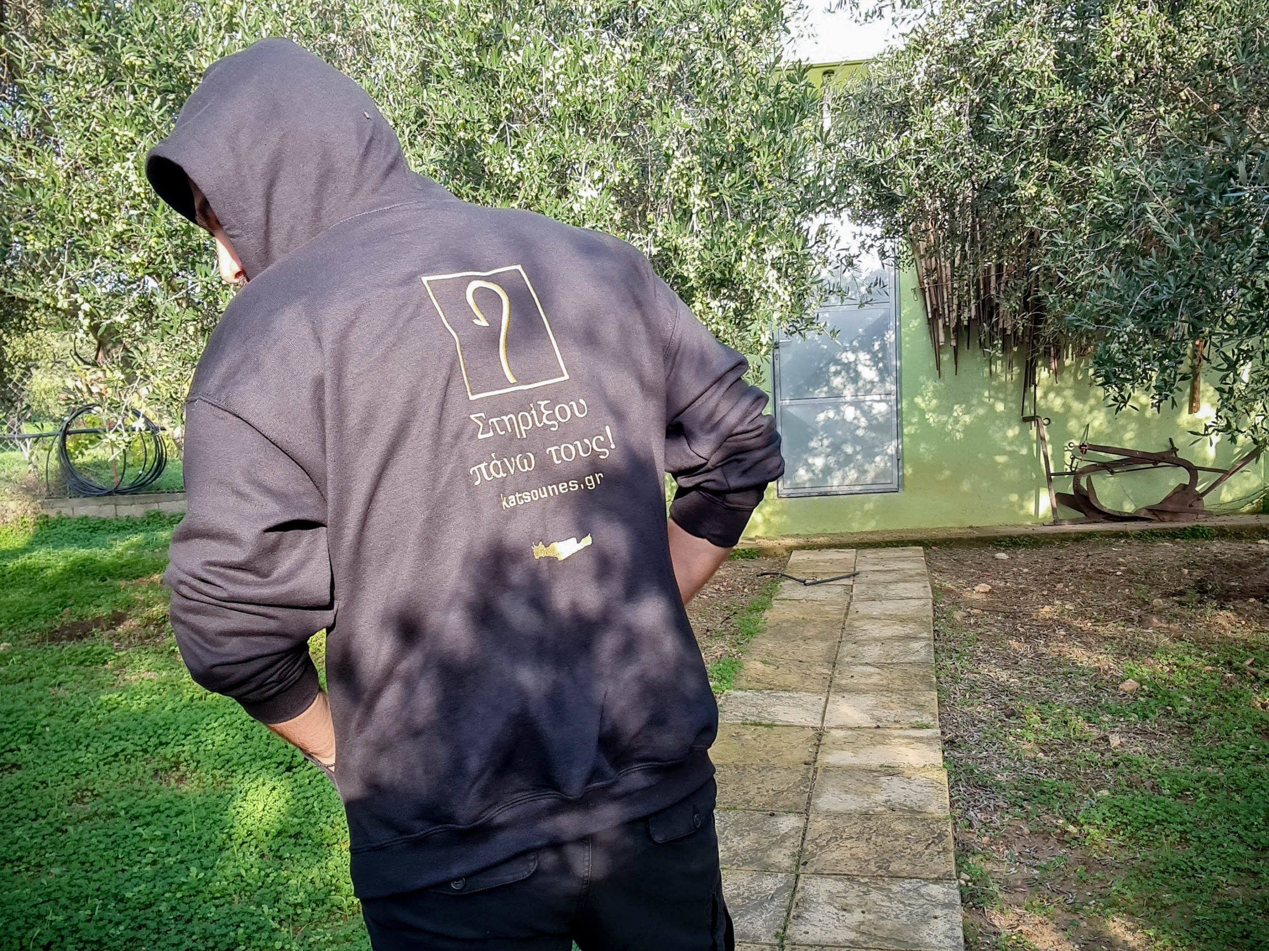 Ζακέτα Μαύρη Βαμβακερή με χρυσό κέντημα στην πίσω όψη του την Κρήτη και μία κρητική κατσούνα!