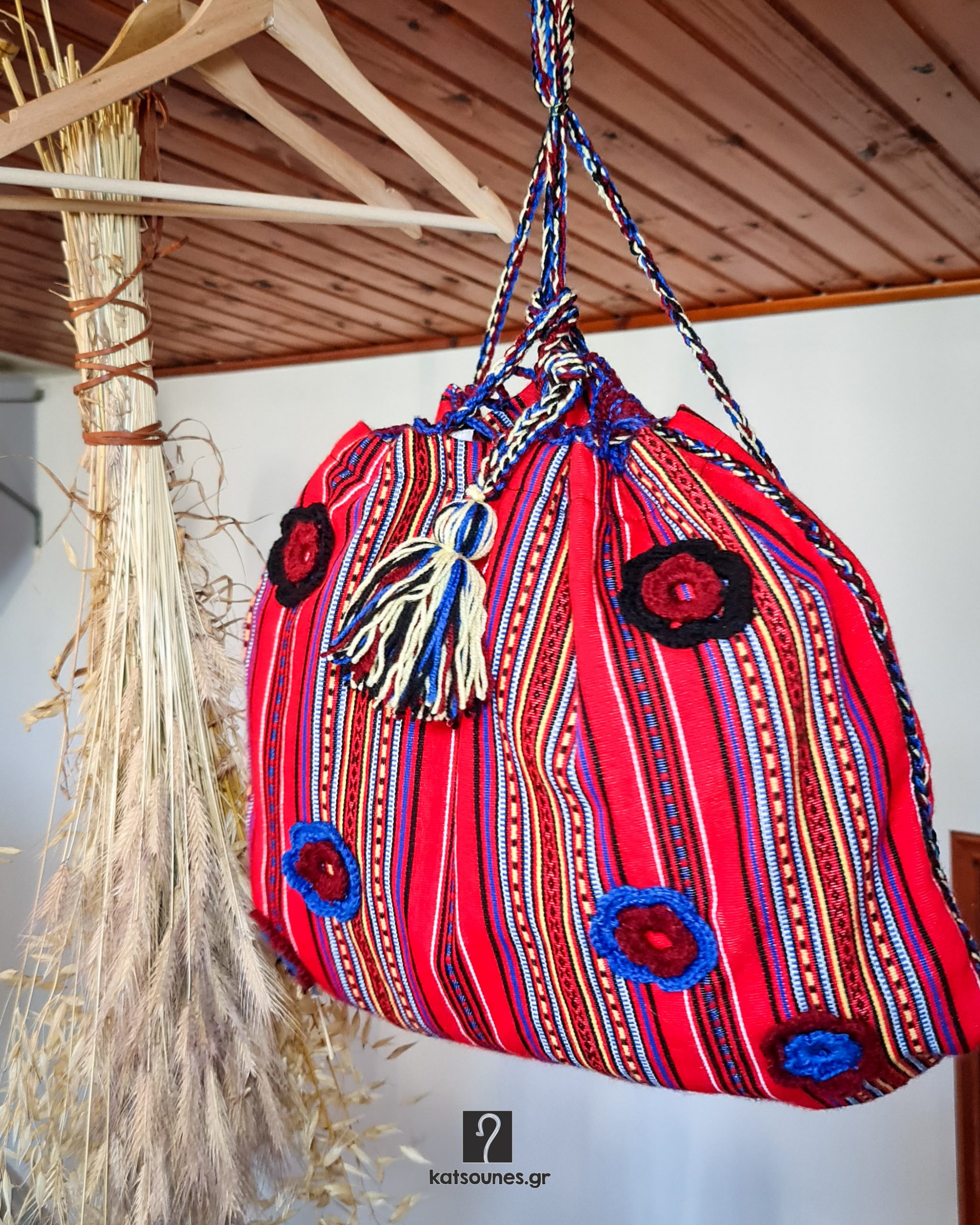 - Διακόσμηση με κεντητά λουλούδια και φούντες.
