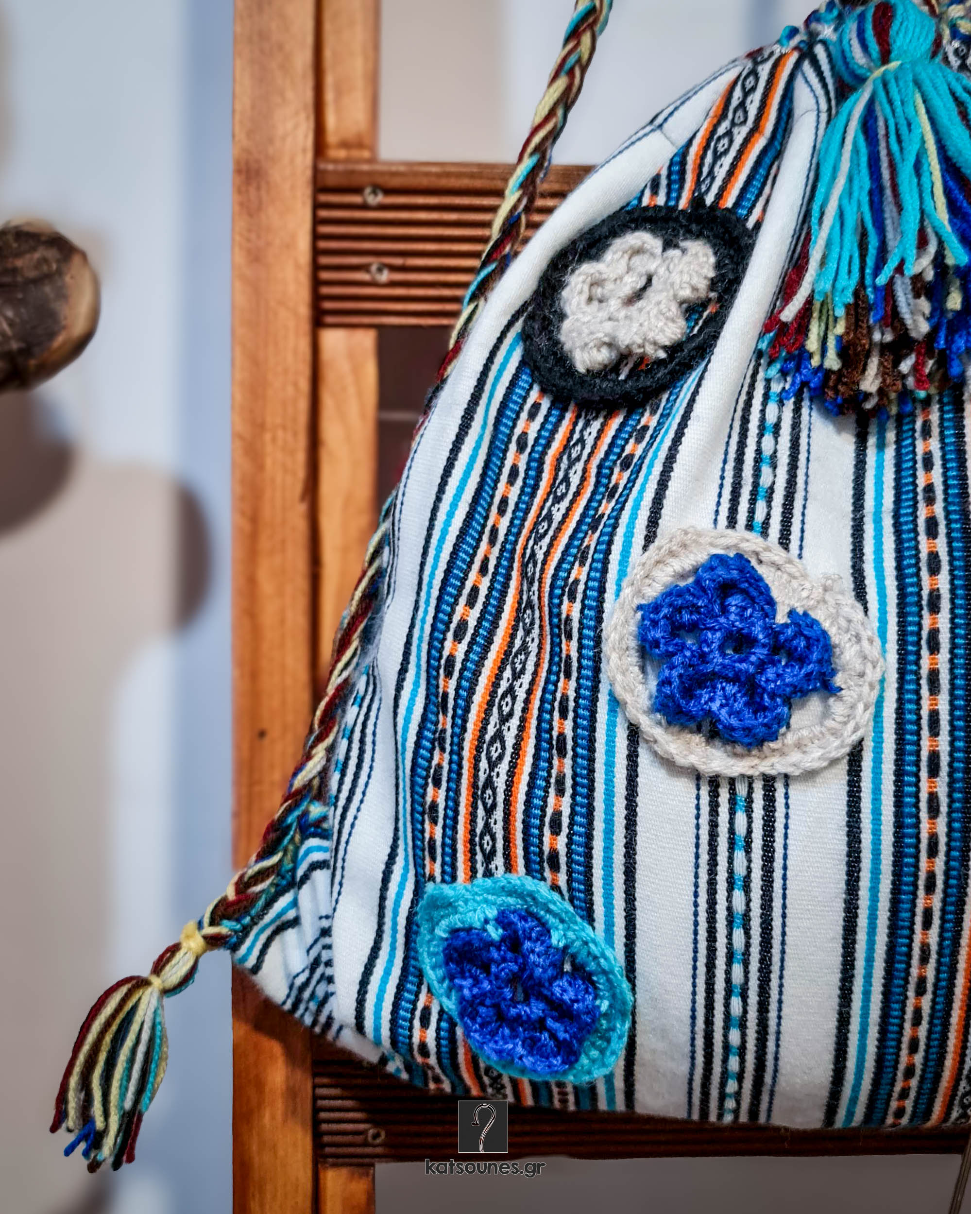 - Διακόσμηση με κεντητά λουλούδια και φούντες.