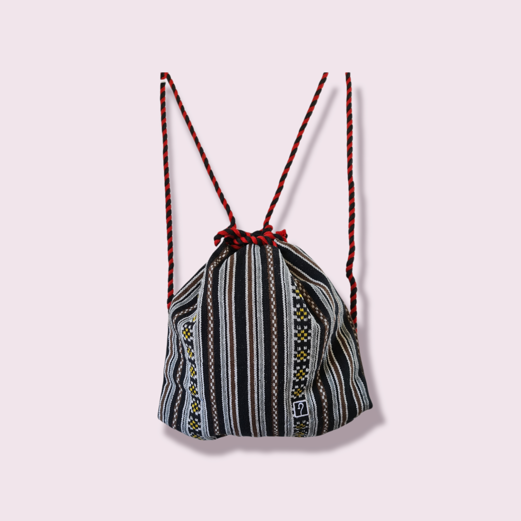 • Yφαντή τσάντα βούργια, με πολύχρωμο ριγέ σχέδιο.