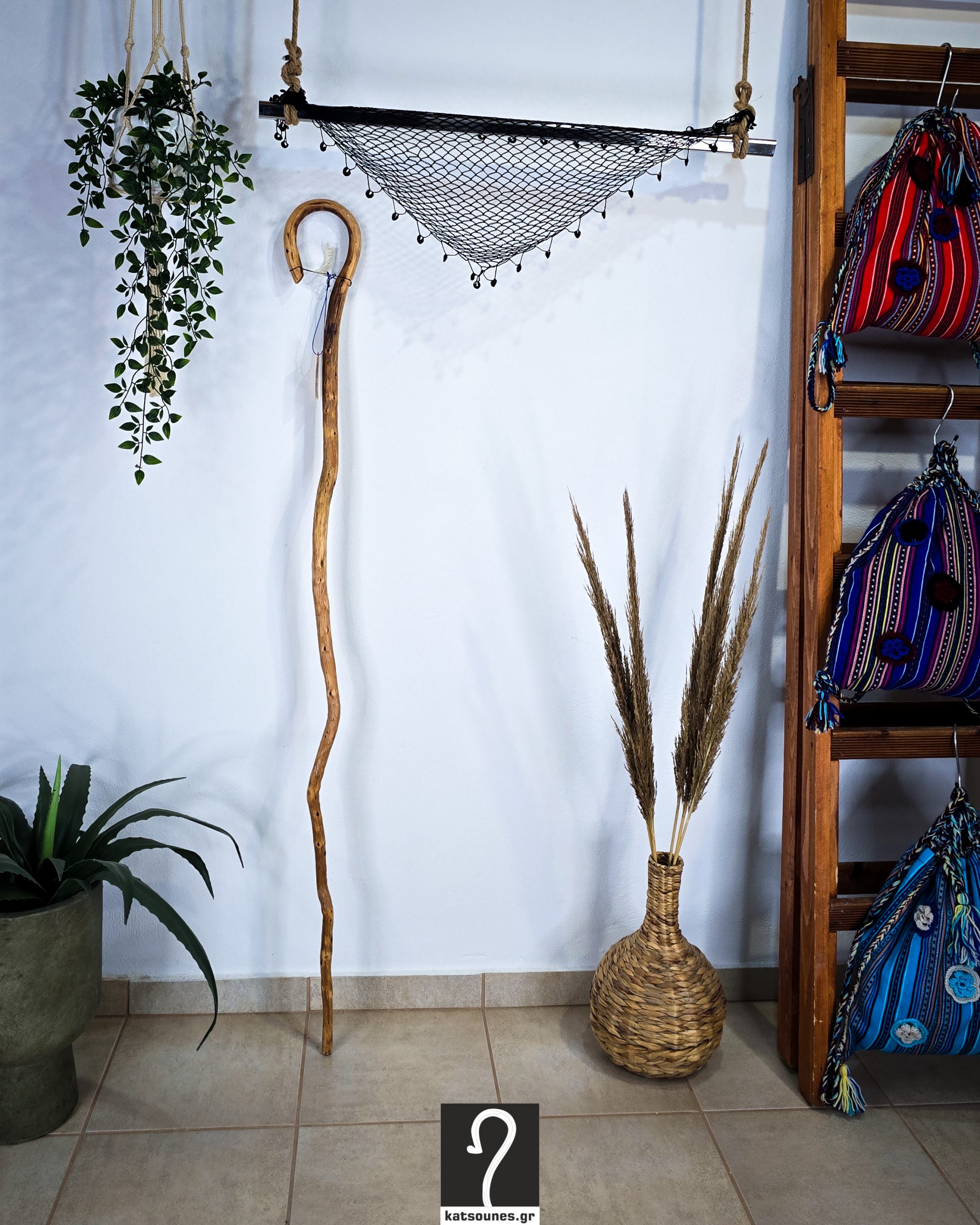 Κρητική Κατσούνα με μεγάλος ύψος και καμπύλες. Ξύλο Πρίνου και ύψος 1,57 μ | ΚΩΔ 111125-ΣΤ26