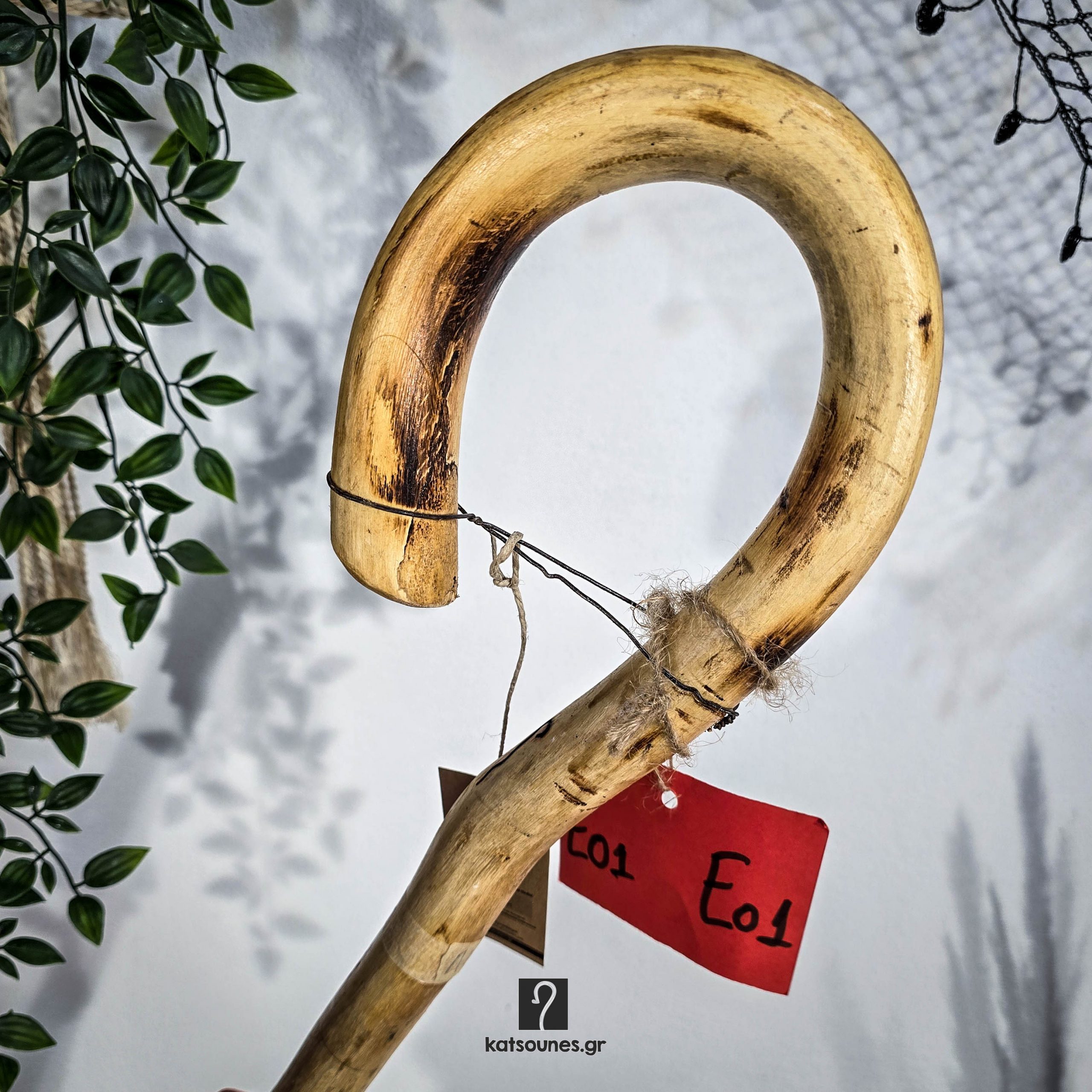 Special Κρητική Κατσούνα με υπέροχο στρογγυλό γύρισμα και 10 εκ περίμετρο. Από ξύλο Λιτσικουδιά και Ύψος 1,26 μ | ΚΩΔ 040924-Ε01