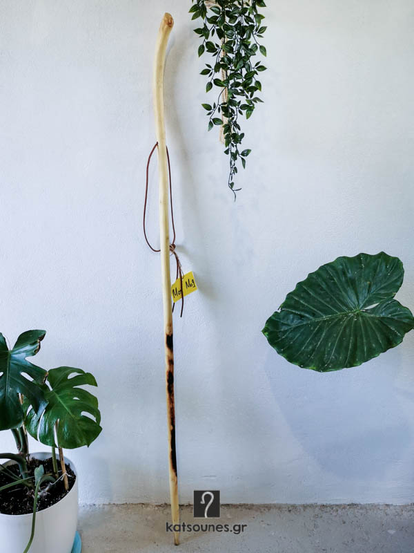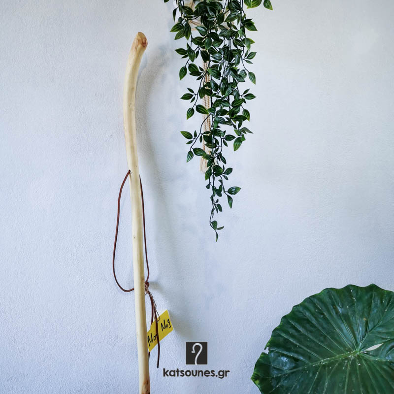Πεζοπορικό ραβδί από αποφλοιωμένο ξύλο κρανιάς, με δερμάτινη λουρί ασφαλείας.