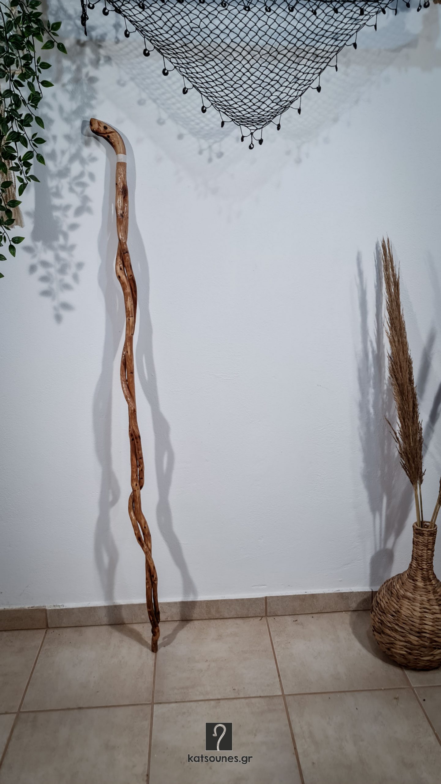 Special Κρητική Kατσούνα με πλεξούδα που φτάνει μέχρι την κορυφή και σκαλιστό τελείωμα κεφάλι φιδιού. Από ξύλο Πρίνου και ύψος 1,45 μ  ΚΩΔ 260524-Θ9