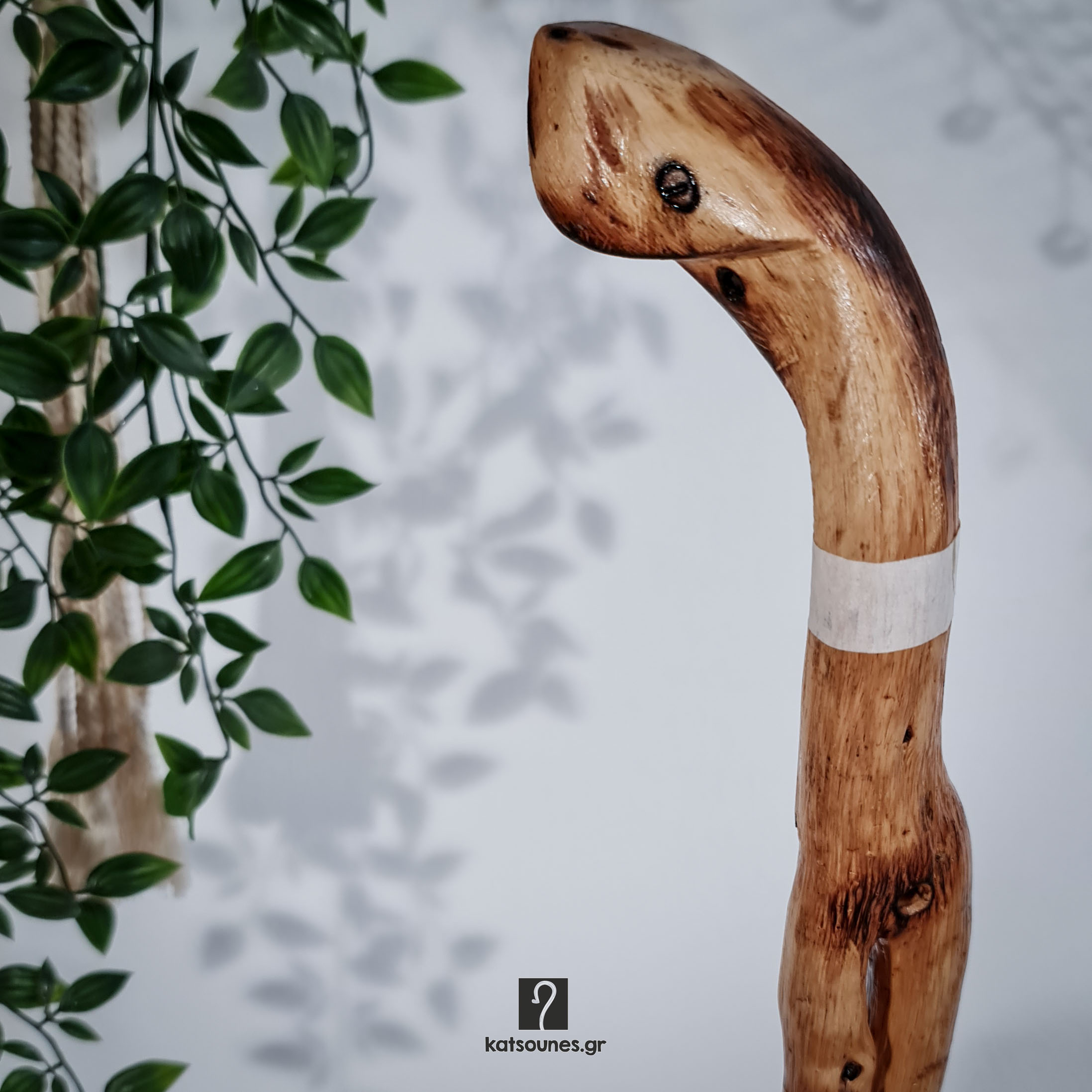 Special Κρητική Kατσούνα με πλεξούδα που φτάνει μέχρι την κορυφή και σκαλιστό τελείωμα κεφάλι φιδιού. Από ξύλο Πρίνου και ύψος 1,45 μ ΚΩΔ 260524-Θ9