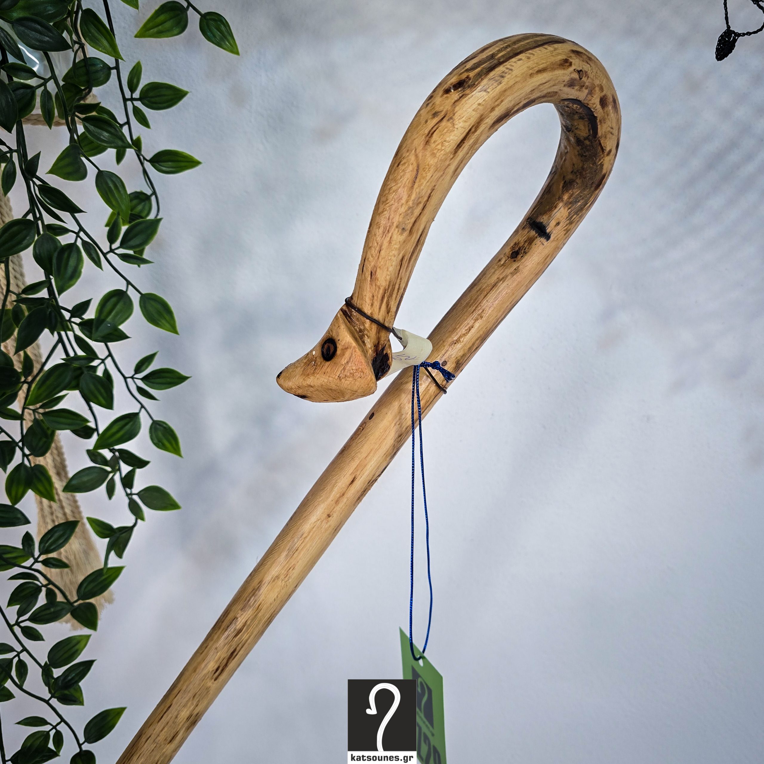 Παραδοσιακή Σκαλιστή Κρητική Κατσούνα Φίδι, ιδανική για κάθε χρήση. Από ξύλο Πρίνου 1,39 μ | ΚΩΔ 151225-ΤΖ29