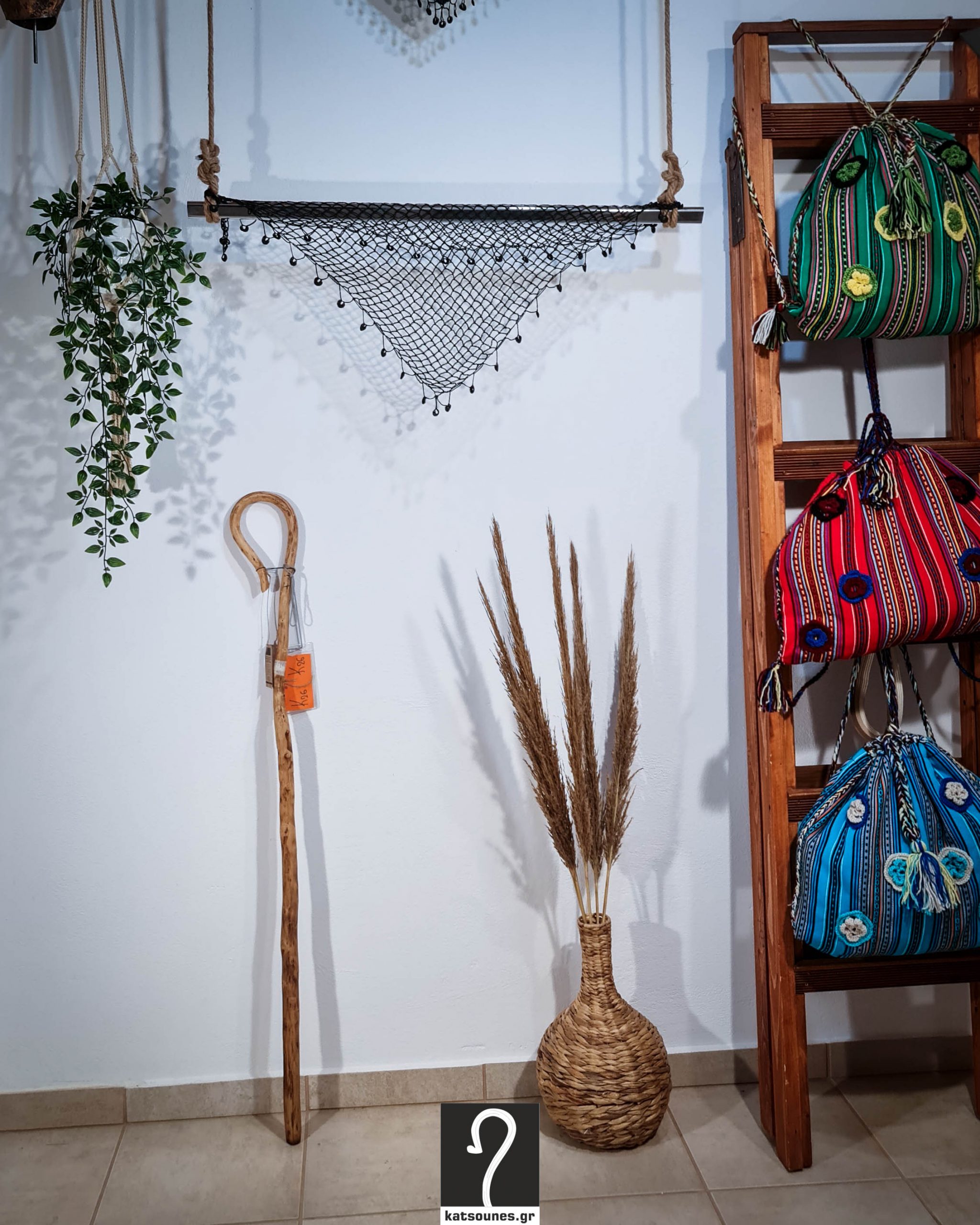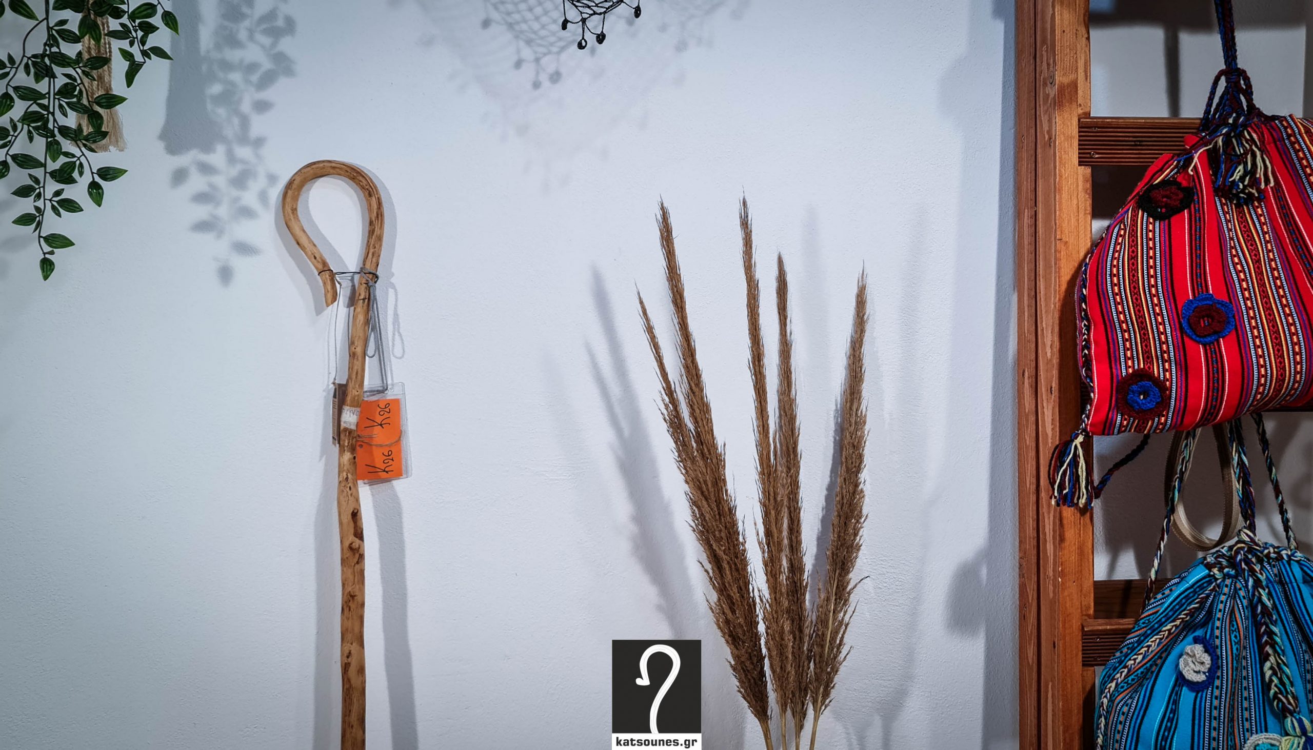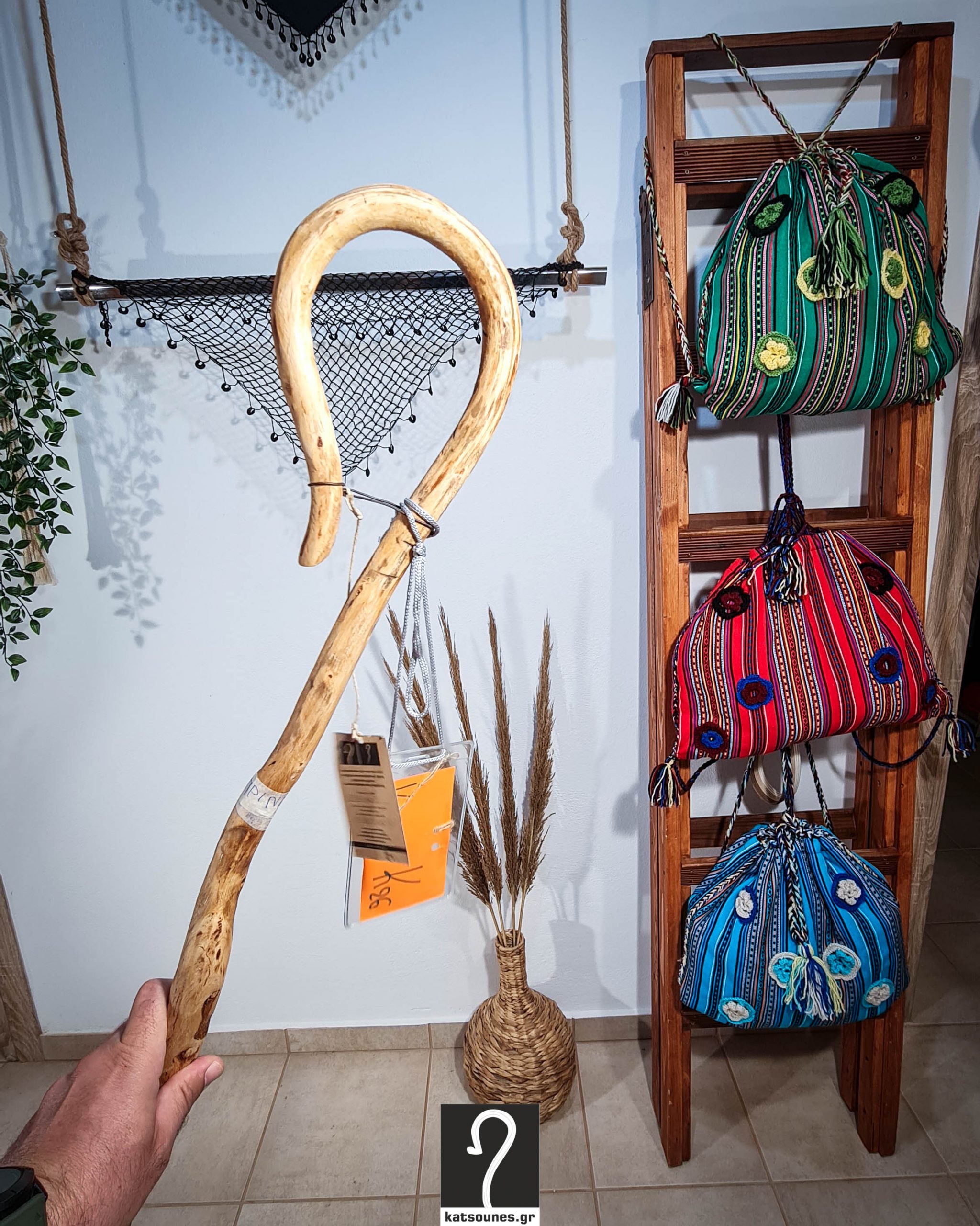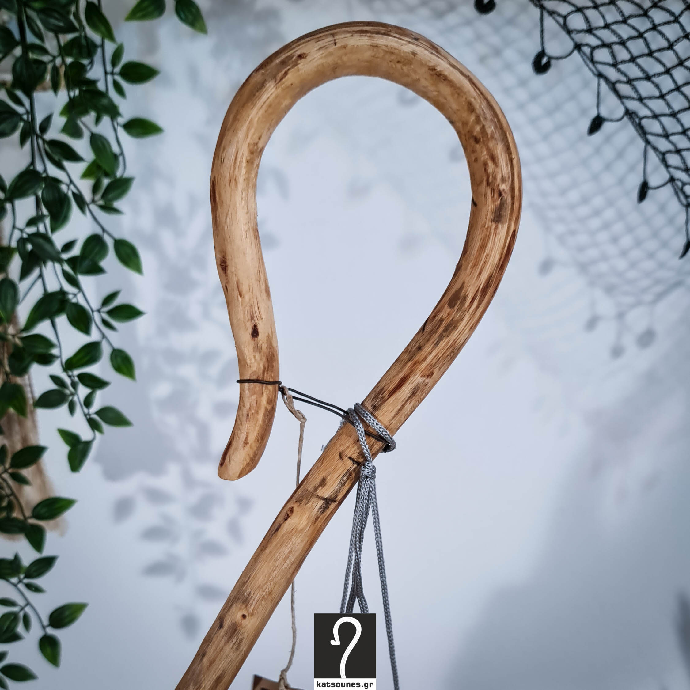 Κρητική κατσούνα με διπλό αντίθετο και άγριο γύρισμα. Ιδανική για καθημερινή χρήση και στήριξη. Από ξύλο Πρίνου και ύψος 1,20 μ | ΚΩΔ 021024-Κ26