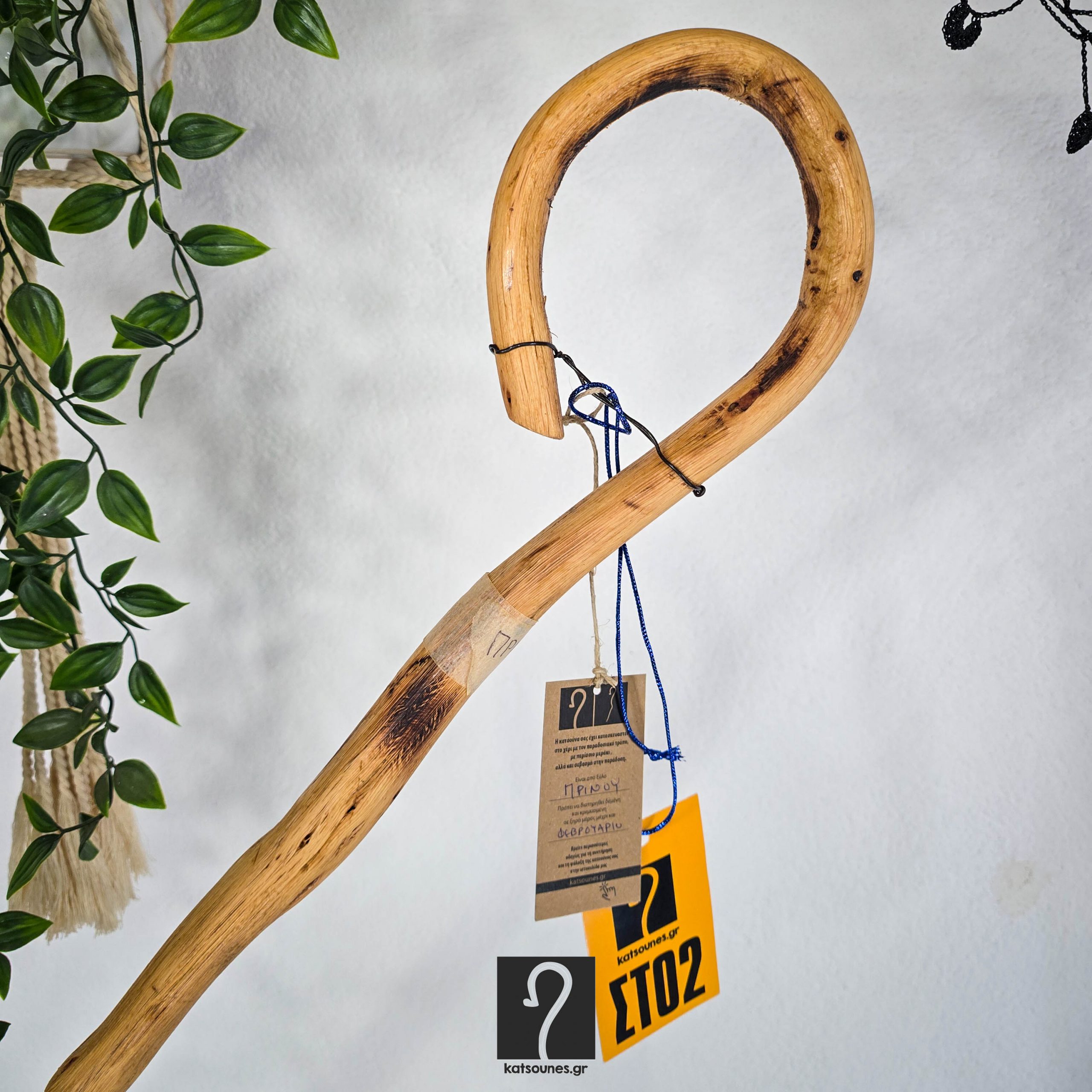 Κρητική Κατσούνα με τέρμα κλειστό γύρισμα. Ιδανική για καθημερινή χρήση και στήριξη, από ξύλο Πρίνου και ύψος 1,28 μ | ΚΩΔ 210226-ΣΤ02