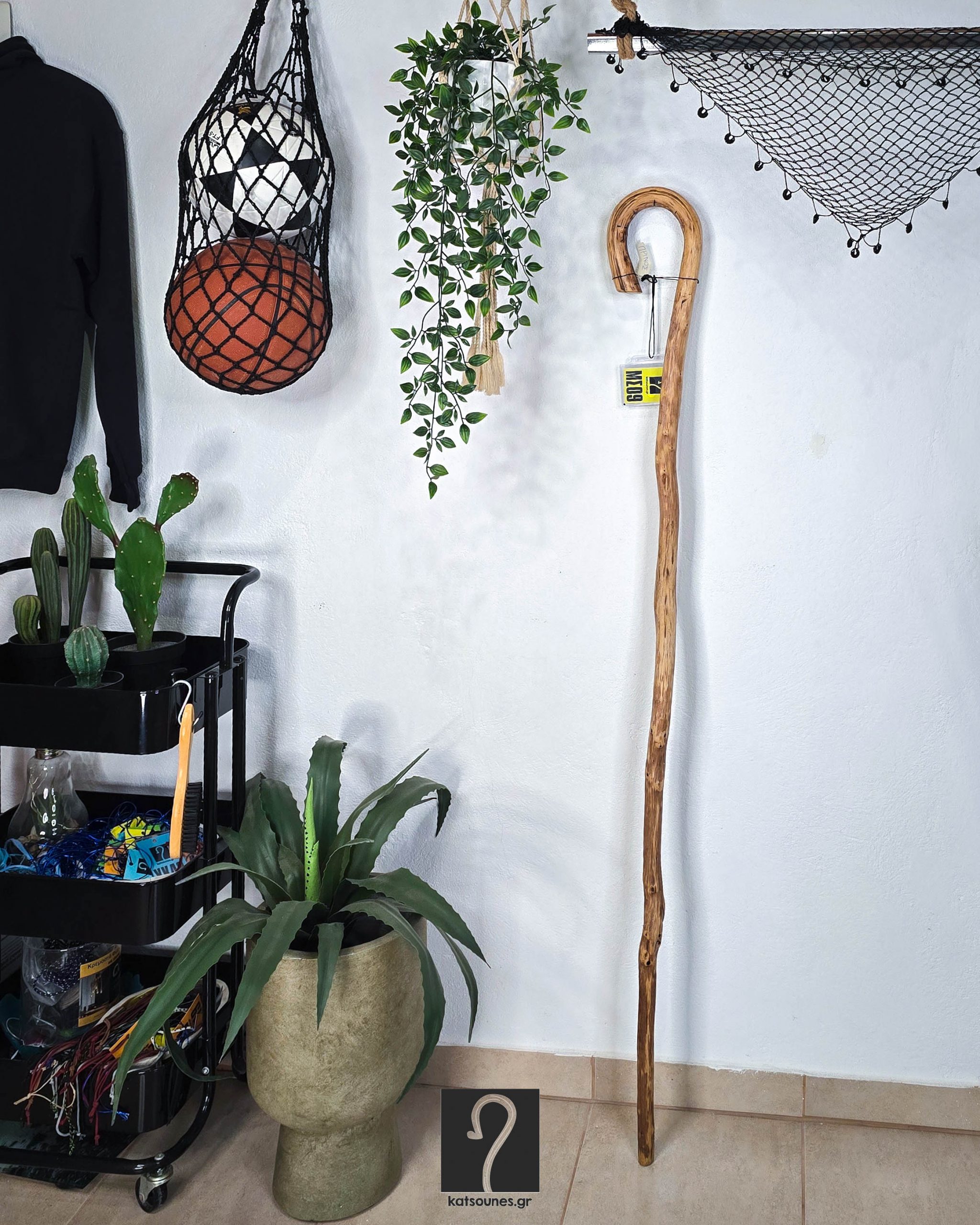 Κρητική Στιβαρού Τύπου Κατσούνα για κάθε χρήση. Εντυπωσιακή κι Αυθεντική από ξύλο Πρίνου, ύψος 1,47 μ | ΚΩΔ 060125-ΜΣ09